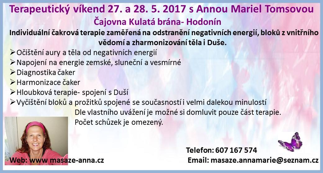 27. – 28.5.2017 TERAPEUTICKÝ VÍKEND S ANNOU MARIEL TOMSOVOU